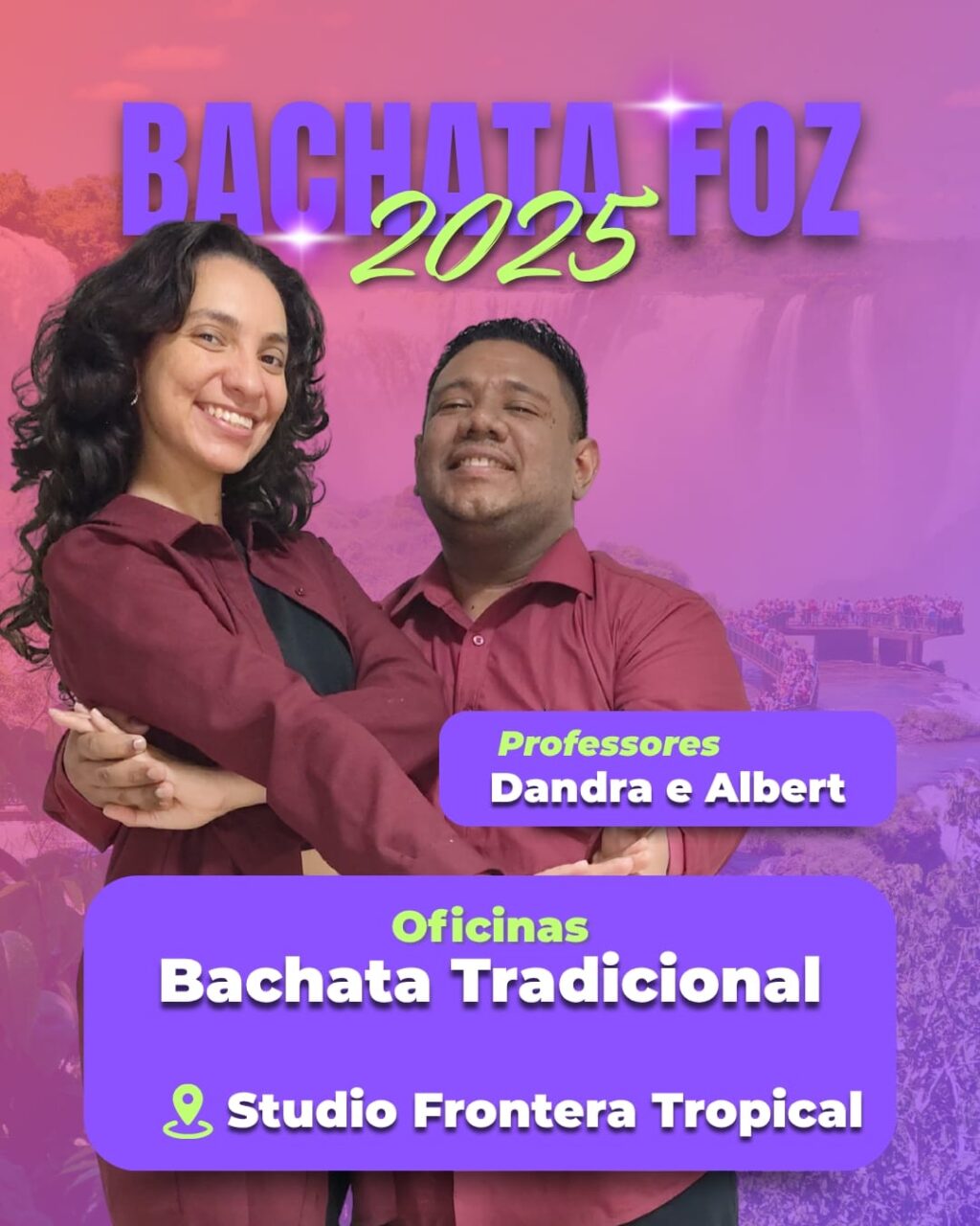 - 17:00–18:30 → Oficina Bachata Tradicional, com Dandra & Albert (Foz do Iguaçu)