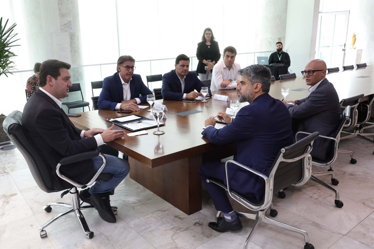 PRESENÇAS – Também acompanharam a reunião o secretário estadual de Infraestrutura e Logística, Sandro Alex; o diretor de Relações Internacionais e Institucionais da Invest Paraná, Giancarlo Rocco; e presidente do DER/PR, Fernando Furiatti.